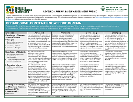 Use the self-reflection rubric as you consider your own teaching practice as it relates to pedagogical content knowledge. Download the file to get started.